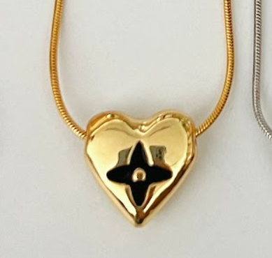 “Kalp figürü ve siyah detaylı tasarımıyla bu gold kolye, zarafeti modern bir dokunuşla buluşturur.” ❤️✨