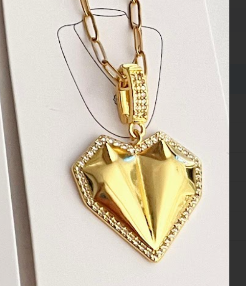 “Altın kaplama kalp tasarımı ve ışıltılı taş detaylarıyla bu kolye, zarafeti ve romantizmi bir arada sunar.” ❤️✨