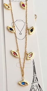 Renkli taş detaylarıyla öne çıkan nazar kolye, şıklığınızı tamamlayan zarif bir dokunuş sunar.”