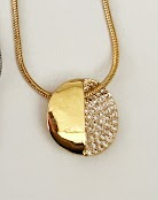 “Yarım taş detaylı yuvarlak tasarımıyla bu gold kolye, modern ve zarif bir ışıltı sunar.” ✨