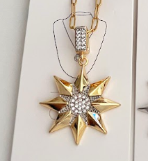 “Işıltılı taşlarla süslenmiş yıldız tasarımlı kolye, zarafetinizi ve enerjinizi yansıtacak özel bir parça.” ✨